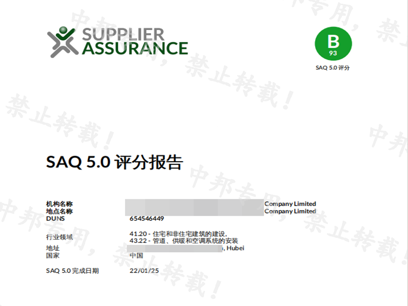恭贺XX集团有限公司2025年1月顺利通过SAQ评估 获得93分!