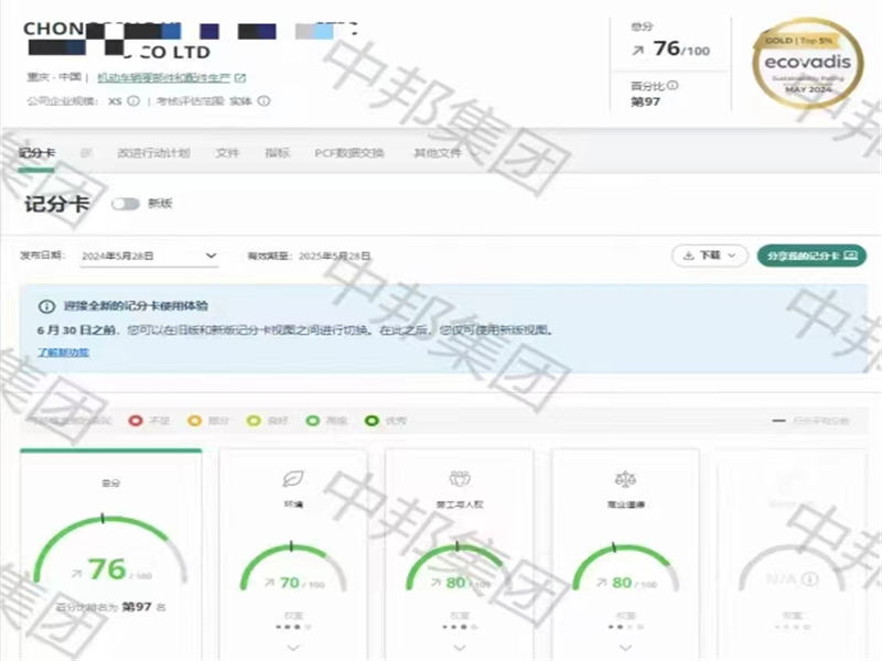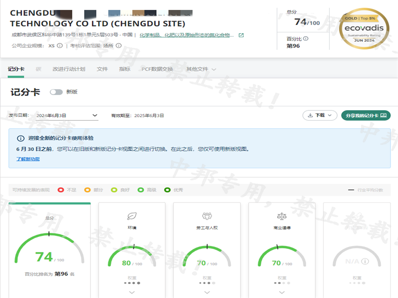 恭贺成都XX高分子科技有限公司2024年7月顺利通过Ecovadis验厂