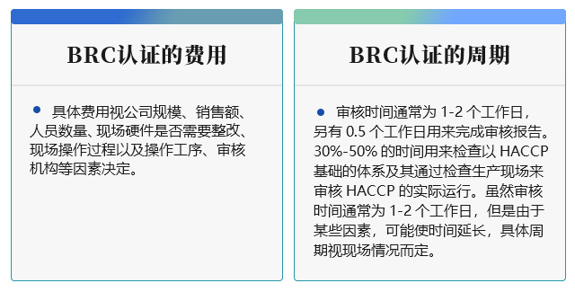 BRC认证的费用与周期