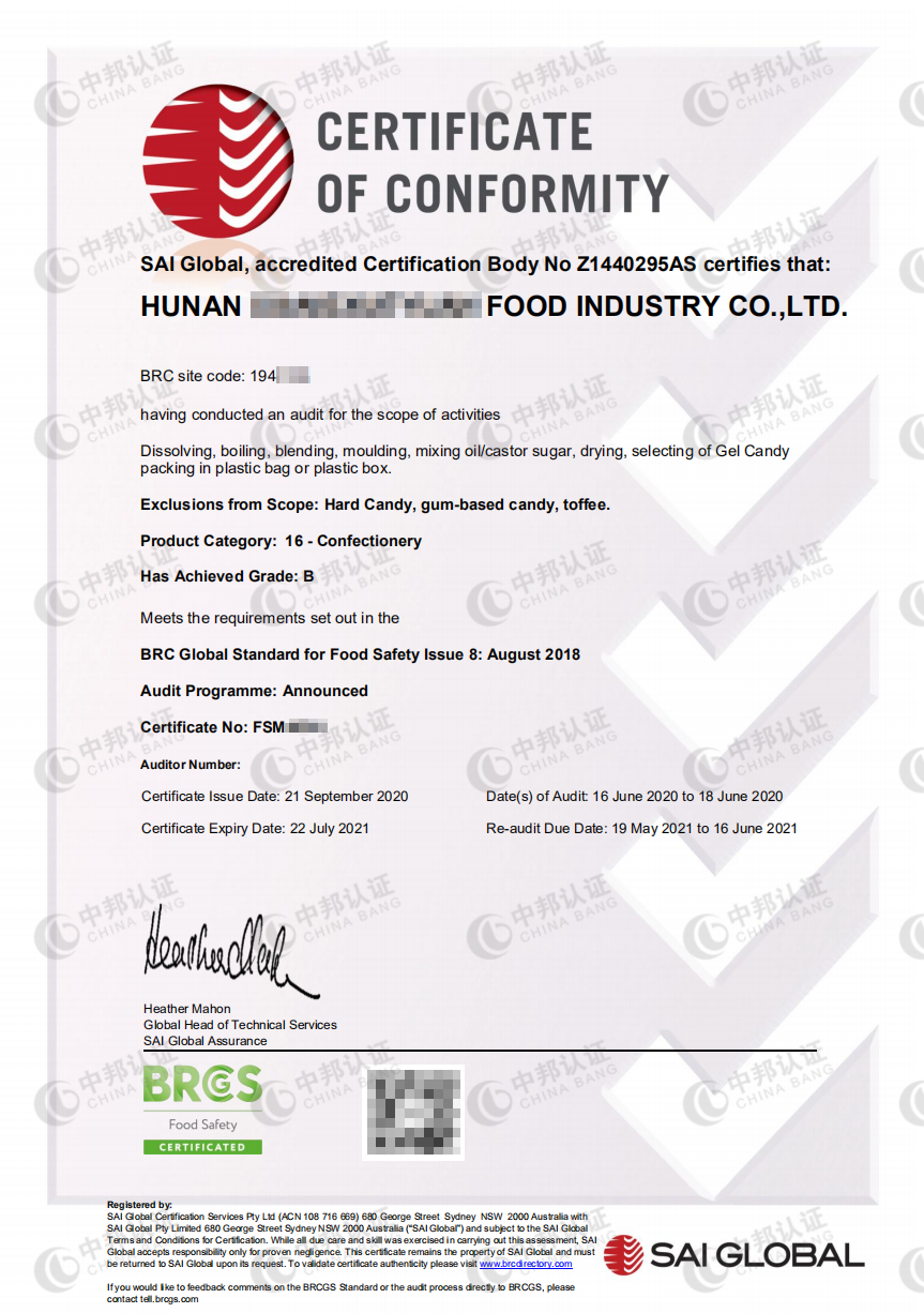 1、认可度高:BRC认证是国际公认的标准,深受国际买家的接受和认可。